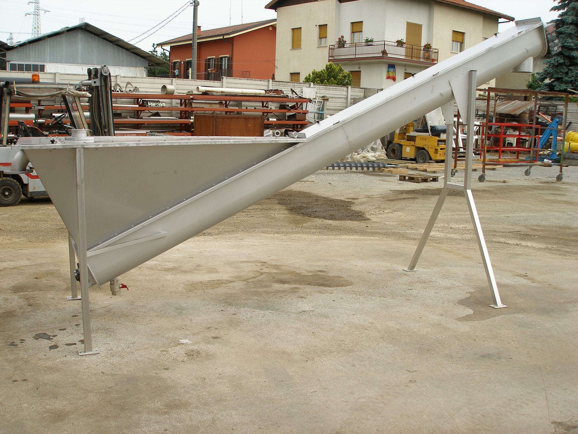 Struttura costruita in AISI 304/316 o in acciaio al carbonio, mentre la coclea può essere costruita con elica e anima di supporto o con elica di grande spessore senza anima. In questo caso il trogolo è rivestito di materiale antiusura sul quale gira l’elica.