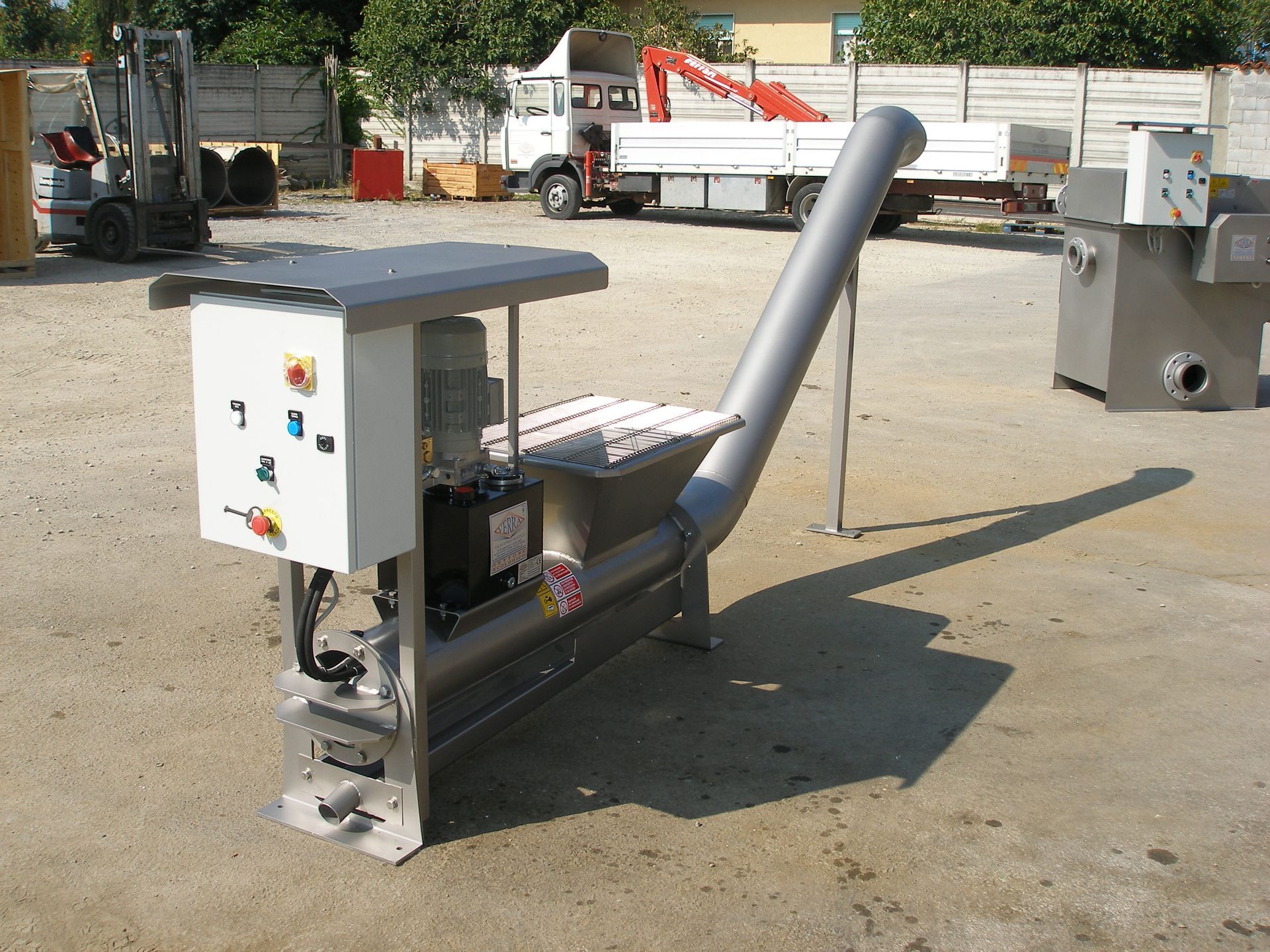 Esso comprime il materiale, con moto alternativo, caricato nella tramoggia e lo spinge verso il convogliatore di scarico.